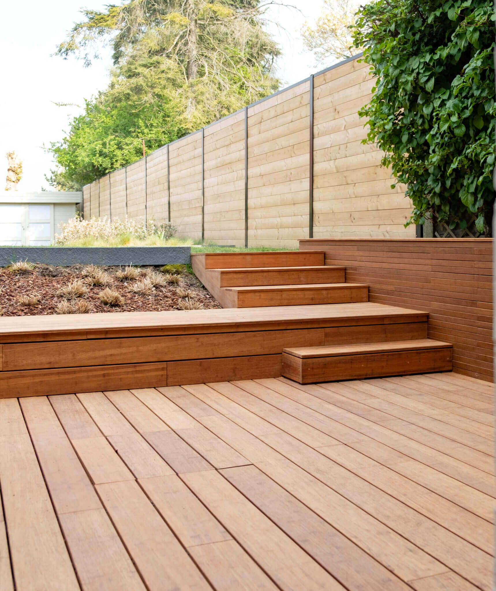 Deze terrasplanken hebben een lengte van 2200 mm, zijn extra breed ; 180 mm en zijn 20 mm dik. De terrasdelen zijn uitgevoerd met een vlakke zijde en een zijde met ribbel. U kunt dus kiezen uit twee verschillende uitstralingen met dezelfde vlonderplank. Wilt u de ribbelzijde zien? Klik dan hier. De bamboe vlonderplanken zijn eenvoudig te installeren zonder het zicht van schroeven. Dit komt dankzij de tand en groef op de kop van de bamboeplanken, de montage langszij met behulp van clips en de perfecte stabiliteit. Voor uitgebreide informatie en leginstructies raadpleeg ons plaatsingsadvies.