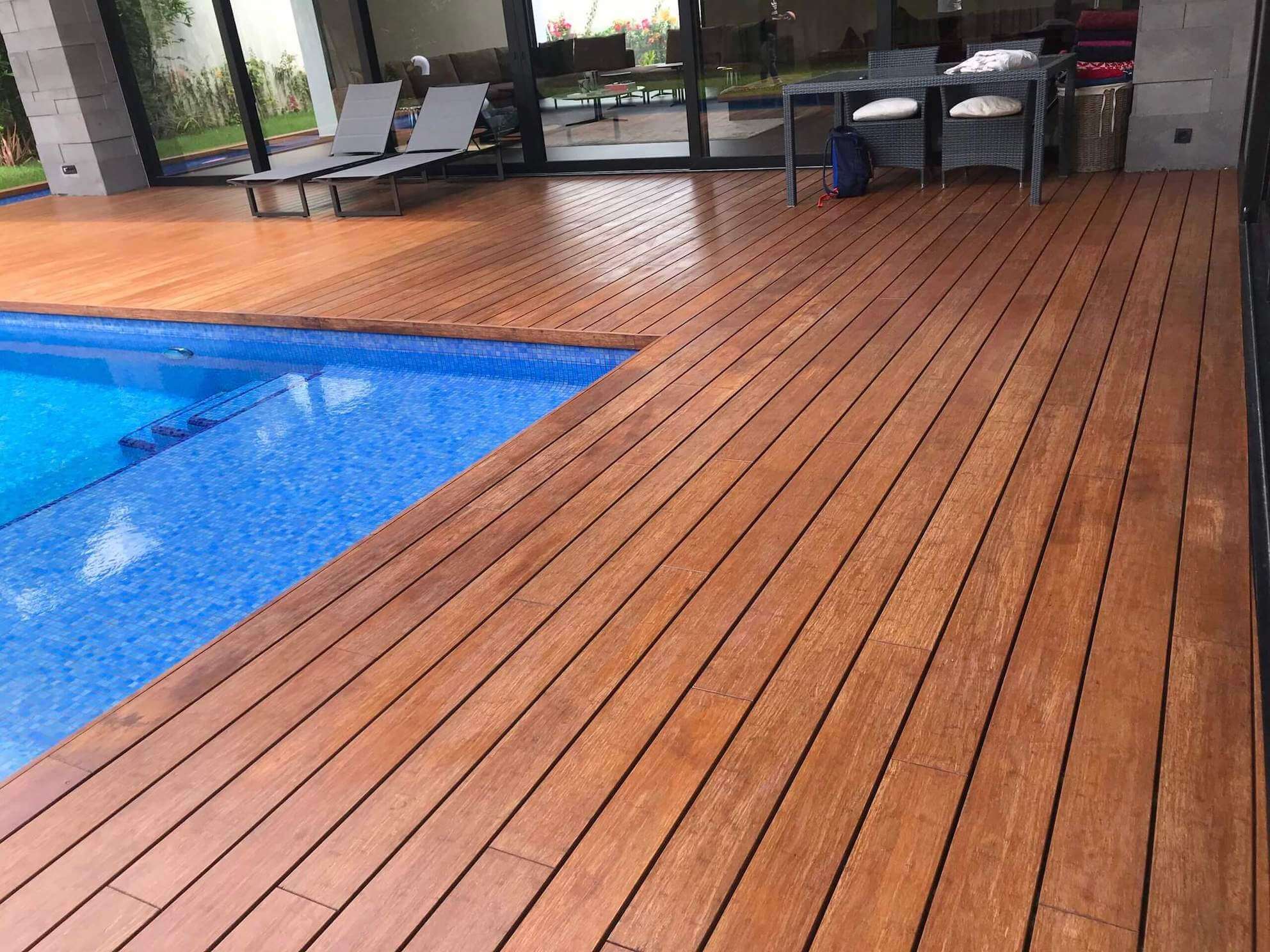 De vlonderplank Ceylon massief effen breed heeft bij installatie een mooie diepe rood-bruine kleur. Zonder onderhoud zullen de bamboe planken op een natuurlijke manier vergrijzen als gevolg van UV-straling. Wilt u de kleur behouden en het vergrijzen tegengaan, dan kunt u met een hoogwaardige buitenolie (WOCA exterior) de vlonderplanken 1 a 2 keer per jaar een behandeling geven.
